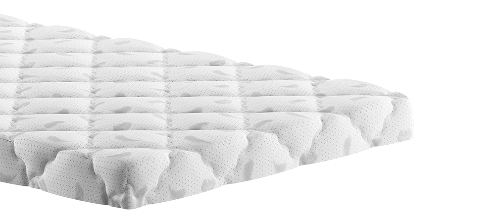 Верхнее покрытие матраса жаккард, простеганный на полиэфирном волокне со спанбондом- высокопрочная ткань, состоящая из синтетических материалов с добавлением нитей из натуральных тканей с особым переплетением волокон. Смесовый жаккард может быть двойным (дублированным) или недублированным. Как правило, дублированный жаккард используют в качестве верхнего покрытия для матрасов, чехлов и наматрасников. Самой важной характеристикой ткани является его прочность и износостойкость.